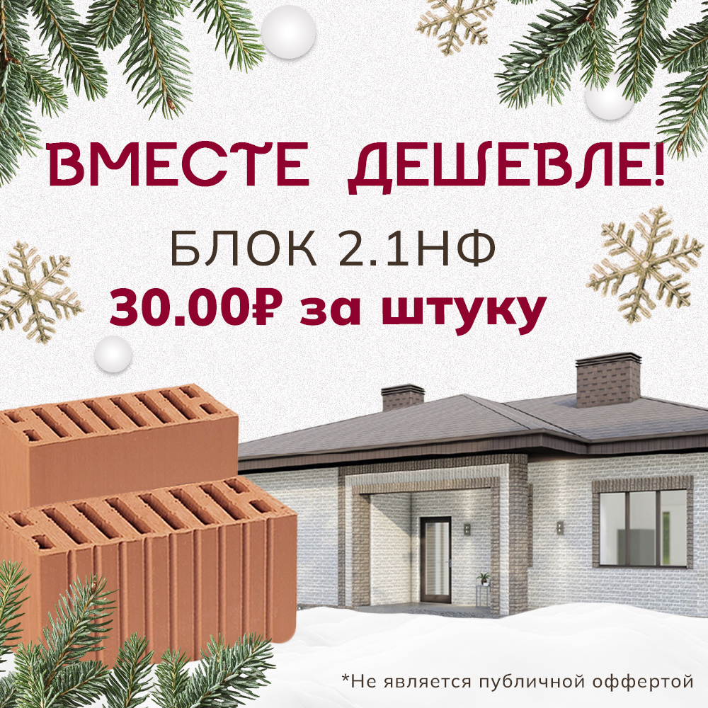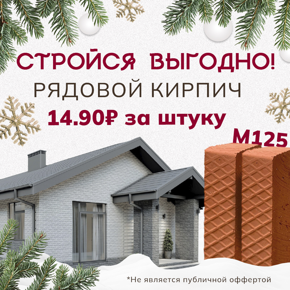Теперь при покупке облицовочного кирпича вы можете приобрести рядовой кирпич по специальной цене - 14,90₽! *